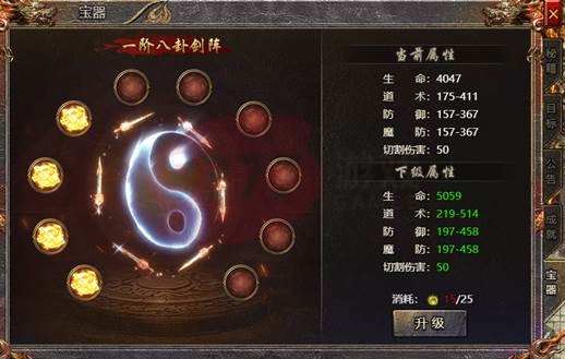 玩家达成成就后,可以获得宝器精华,用于升级宝器