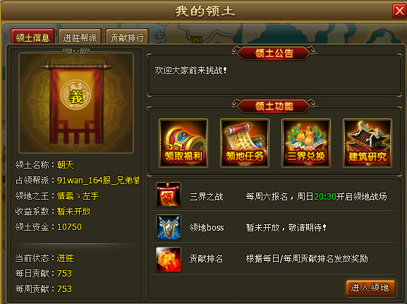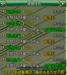 会在右边看到领地任务,每天的任务都是随机的,运气好的可以有两个三界遗宝,但是也会有一个都没有的情况