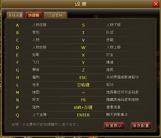 为了更方便游戏操作,建议您使用游戏快捷键,可以轻松打开游戏各系统界面,当然玩家也可以自己设定。
