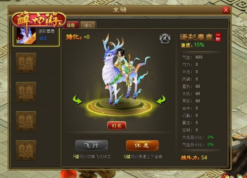所谓人中吕布,马中赤兔。即使是坐骑,也会分个三六九等。在《醉西游》中,玩家可以通过强化石来强化自己的坐骑,当坐骑强化到一定境界,便可有所突破,进入更高的阶段。随着阶段的提升,坐骑所带给玩家的属性速度等收益也会相应提升,不过要注意的是,只有让坐骑出战,才能获得这些收益。