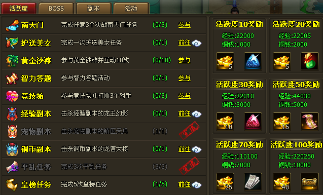 这个非常重要,一天内要是你都完成了活跃度需求的所有达成目标,记得来把你今天的活跃度奖励都拿去哦,你看经验多丰富!~