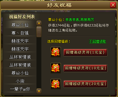 一进游戏记得记得添加好友哦,除了可以有人陪你同行西天路外,好友之间的升级祝福,留在经验葫芦中以后可以获取经验呢!
