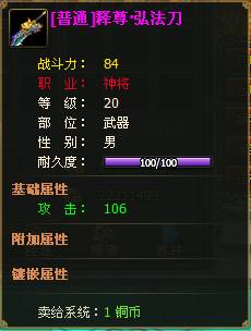 玩家完成20级【如意神兵】任务即可获得对应职业紫色武器。
