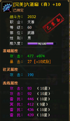 武器、项链、戒指 攻击、暴击、命中、坚韧、防御、气血、闪避、抗性、法力
